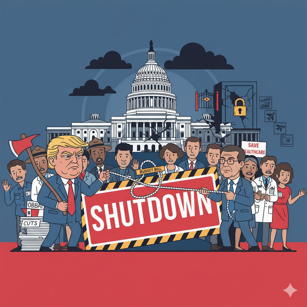 현재 여야 갈등의 핵심 쟁점은 오바마케어와 메디케이드 등 공공 의료보험 예산이다. 도널드 트럼프 대통령은 대규모 감세 법안인 '하나의 크고 아름다운 법'(OBBBA)을 통해 해당 예산의 삭감을 추진하고 있으며, 민주당은 1,700만 명에 달하는 의료보험 수혜자 보호를 위해 예산 유지가 필요하다는 입장이다. 공화당은 상·하원 과반 의석을 확보하고 있지만, 상원에서 예산안 통과에 필요한 60표를 얻으려면 민주당의 협력이 필수적이다. 민주당 지도부는 29일 트럼프 대통령과의 회동을 통해 막판 합의 도출을 시도할 예정이다.