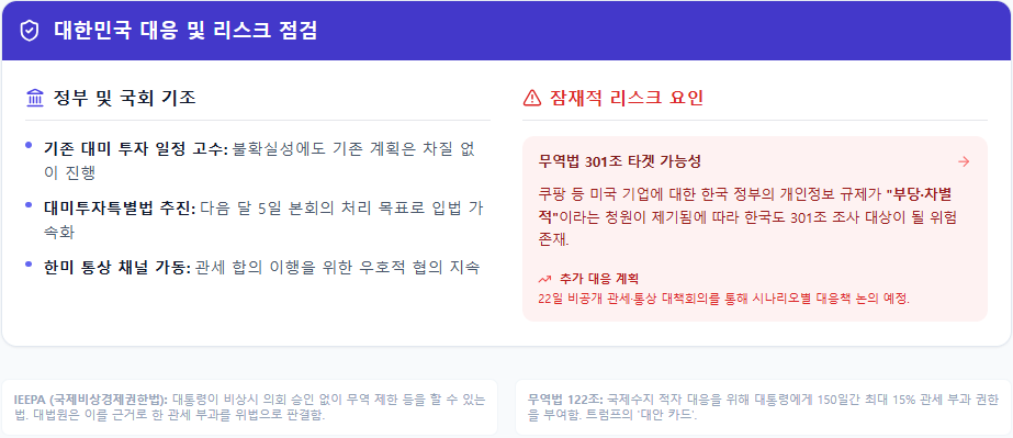 💡 한국 정부는 대미 투자 계획을 차질 없이 진행한다는 계획.